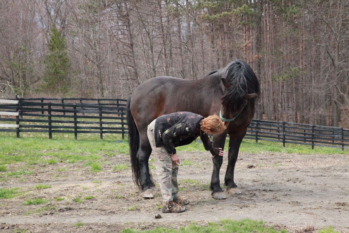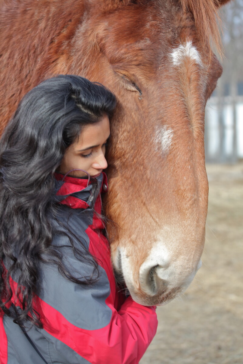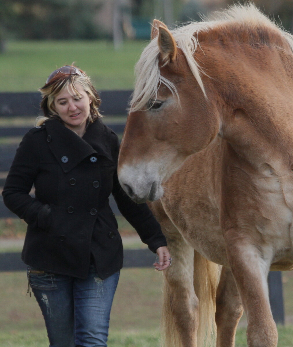 Connecting in an embodied way with horses opens us to discovering our authentic selves and learning new ways of settling and grounding body and mind. Horses, because they are highly sensitive, non-judgemental, non-predatory beings, can often help us with unresolved traumas that continue to impact us in an ongoing way. By releasing these habitual states of flight, fight and freeze, horses help us to become more comfortable in our own skin and more trustworthy to ourselves and others. With their help, we can find a more reliable sense of physical and emotional balance, resilience and ease. Horses, as vigilant prey animals, read not only our movement behaviors but their underlying emotional tone. Often our movement behavior and emotional expression unconsciously reflect an unsettled or distracted state of mind. As we bring greater mindfulness to how we move and the effect of our movement and emotions on the horse, their responses can help us feel when we are dis-regulated, anxious or unaware or finding a more regulated and easeful state of being. CO-REGULATION & CONNECTION