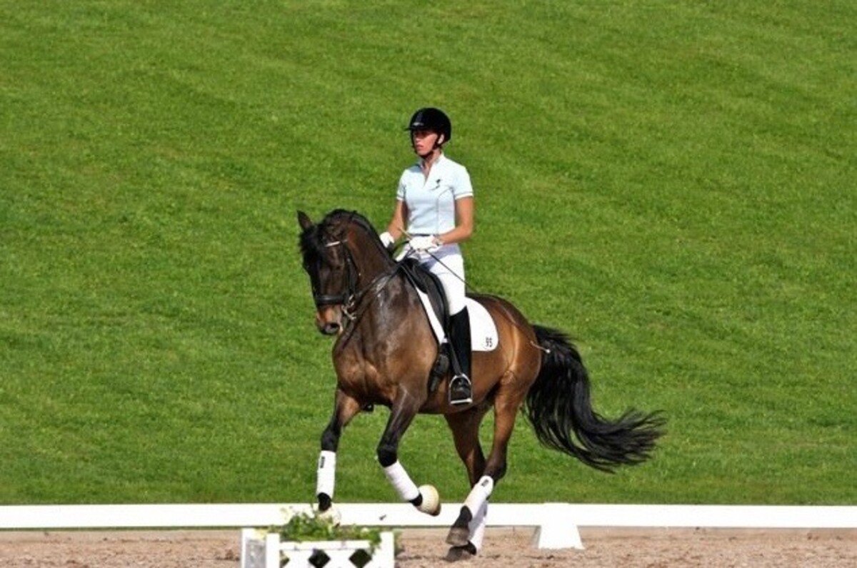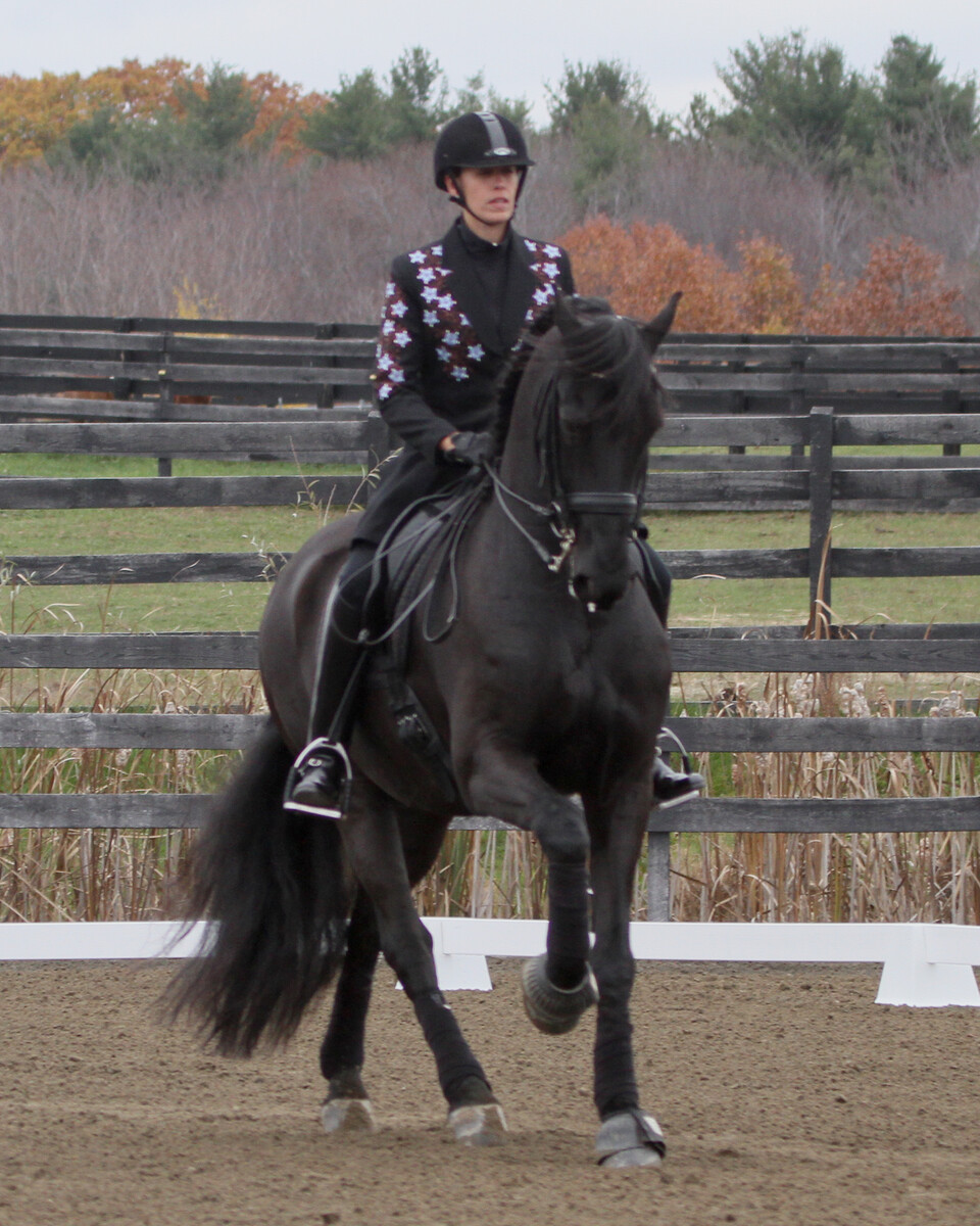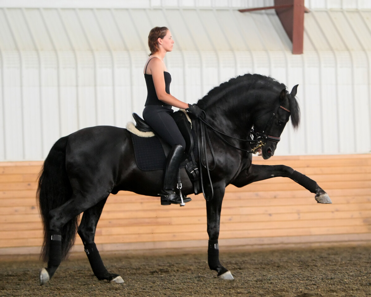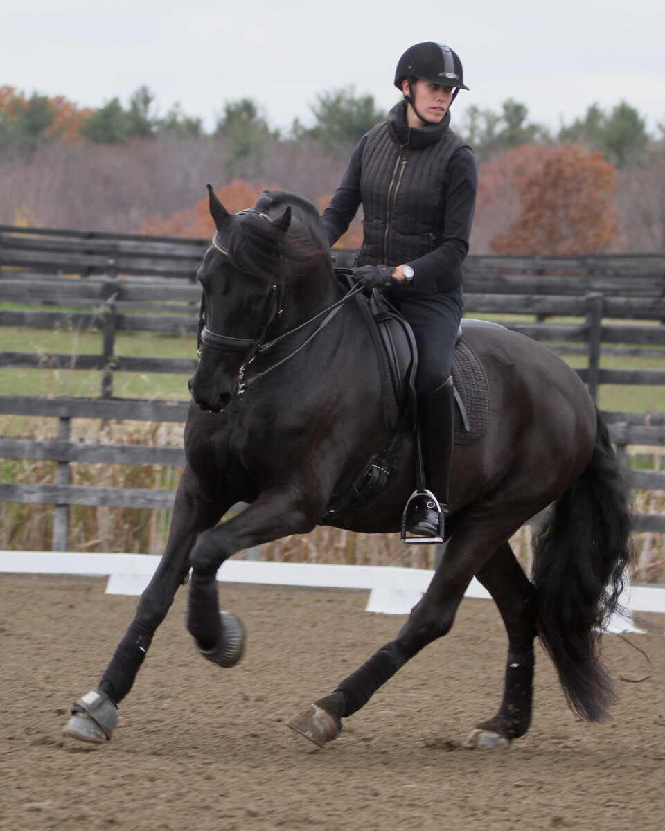 Black Andalusian Stallion from Spain. Imported and trained by Olympian Sabine Schut-Kery. Capprichio is a stunning performer with a clear sense of his own mind and body. Trained to the equivalent of Grand Prix by Sabine, he was able to perform all of the haute ecole movements including piaffe, passage, Spanish walk, extended trot, and pirouette with his beautiful floating gaits. Sabine performed the extraordinary exhibition "Dance with Me" with Capprichio and her friend, the Flamenco dancer Ana Ayromiou, at Dressage at Devon. He also performed at the Washington Nationals, and Palm Beach Dressage among many other venues. Since he has been with me, he has performed in my equestrian dance FLIGHT, ridden by Brandi Rivera. At 29, he still loved to work, but had to be careful due to a heart murmur. Nonetheless, his spirit is great, and he was always pure exuberance to ride. He was also a patient and clear teacher in our Embodied Equine Experience work. SANNE (1998-2018)