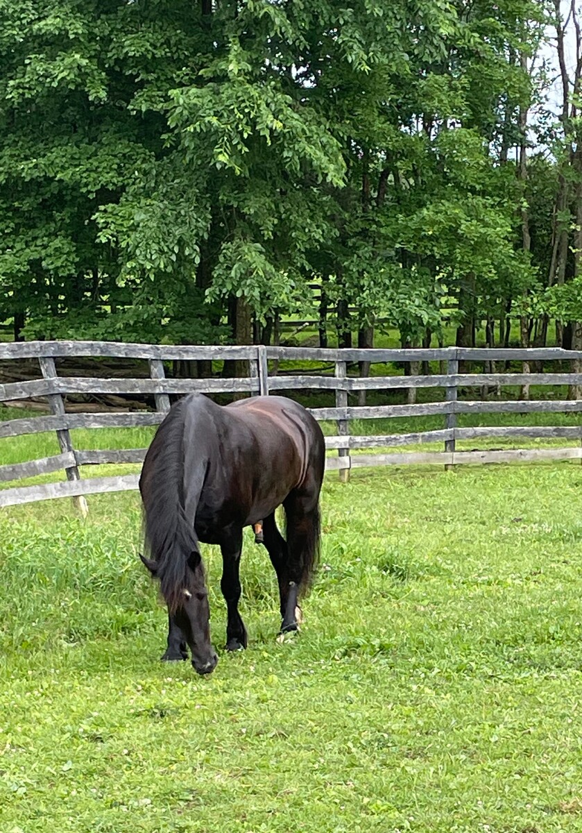 Izarra is a black Mustang mare culled by the BLM from a herd in Nevada. From there, a gap in what we know of her experience until she was rescued from a kill pen by Little Brook Farm in Old Chatham, NY. That is where I met and fell in love with her. She is a wild child, opinionated, curious, tender and fierce all at once. We are learning to dance together, one mindful day at a time. AMADEO (1995-2022)