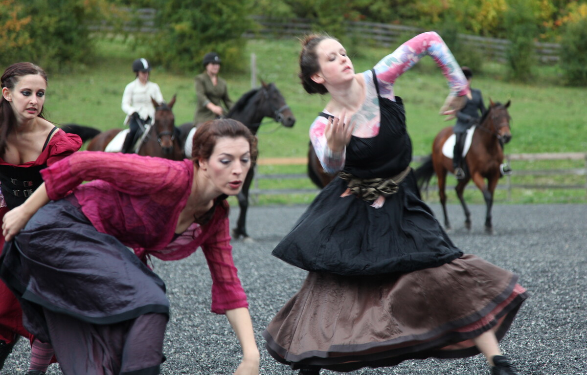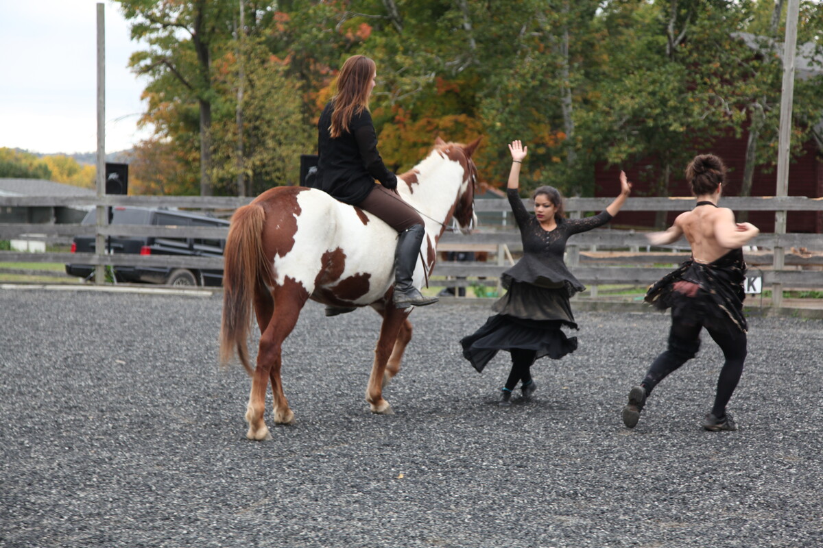 is a community-based, inter-species dance project that brings together riders, vaulters, student dancers, professional dancers from Paula Josa-Jones/Performance Works and singer/performance Artist Ryder Cooley performing with "throw away" horses that have been rescued from abuse or slaughter. It premiered in October 2012 at Little Brook Farm, in Chatham, NY. All the Pretty Horses is the first time rescued horses, who were previously designated as too old, too lame, too dangerous, too wild, could demonstrate their partnership with humans. "It is the time and proper intervention with these formerly cast-off horses that enables them to perform with such beauty, grace and dignity," says Lynn Cross Executive Director of Little Brook Farm. All the Pretty Horses reveals the depth and heart of the human-horse bond and the beauty and possibility of horses that were thrown away or seen as having no value and sold for slaughter. It shows us that when we share time and space with horses, learn to listen to them and communicate through the language of movement, we become more compassionate, more connected to each other and more a part of the shared earth. "What a fabulous and graceful performance. The youth and freshness in the movement and in the troupe (horses included) were a delight. Paula, you continue to amaze and delight your fans." Larry Kunz All the Pretty Horses is an ongoing project, part of our Horses Helping Horses program, that uses performance and educational programming to raise awareness about equine rescue and humane practices. Your donation helps us to make this program available to other sanctuaries as a way of raising awareness and funds for their work. Dancemakers Inc. dba Paula Josa-Jones/Performance Works is a 501(c)3 non-profit organization. Donations are fully tax-deductible to the extent allowed by law. To contribute to All the Pretty Horses, or any of our activities, please use the Google Donate link below or make your check payable to Dancemakers Inc. and send to the address below. We deeply appreciate your tax exempt donation.