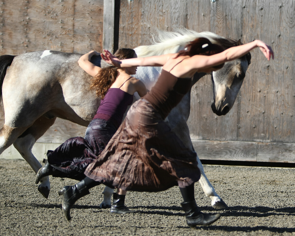 PONY DANCESis performed by dancers DeAnna Pellecchia and Ingrid Schatz, with the liberty horse Escorial ("Pony") and trainer and performer Sarah Hollis, owner of Tintagel Andalusians. PONY DANCES is available for booking for your event, festival or performance season.