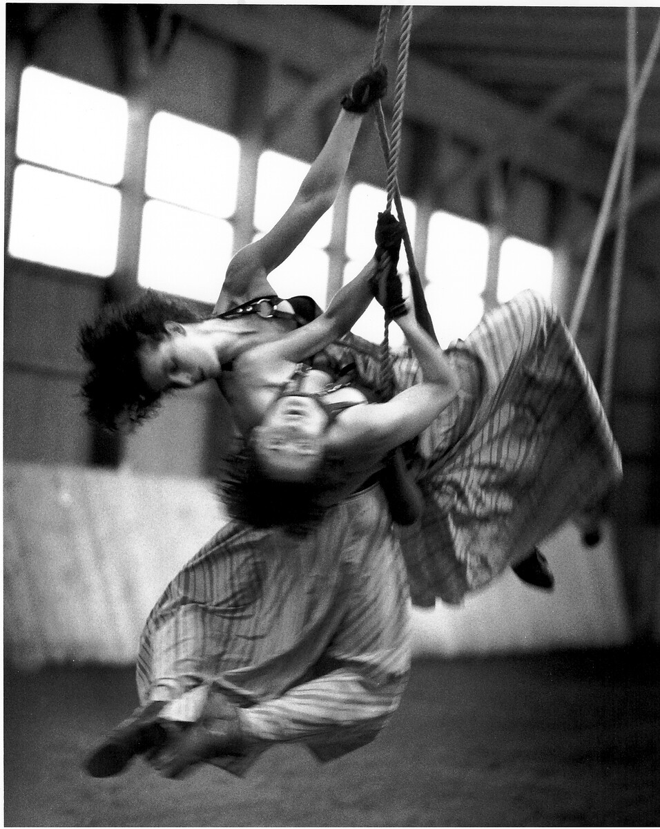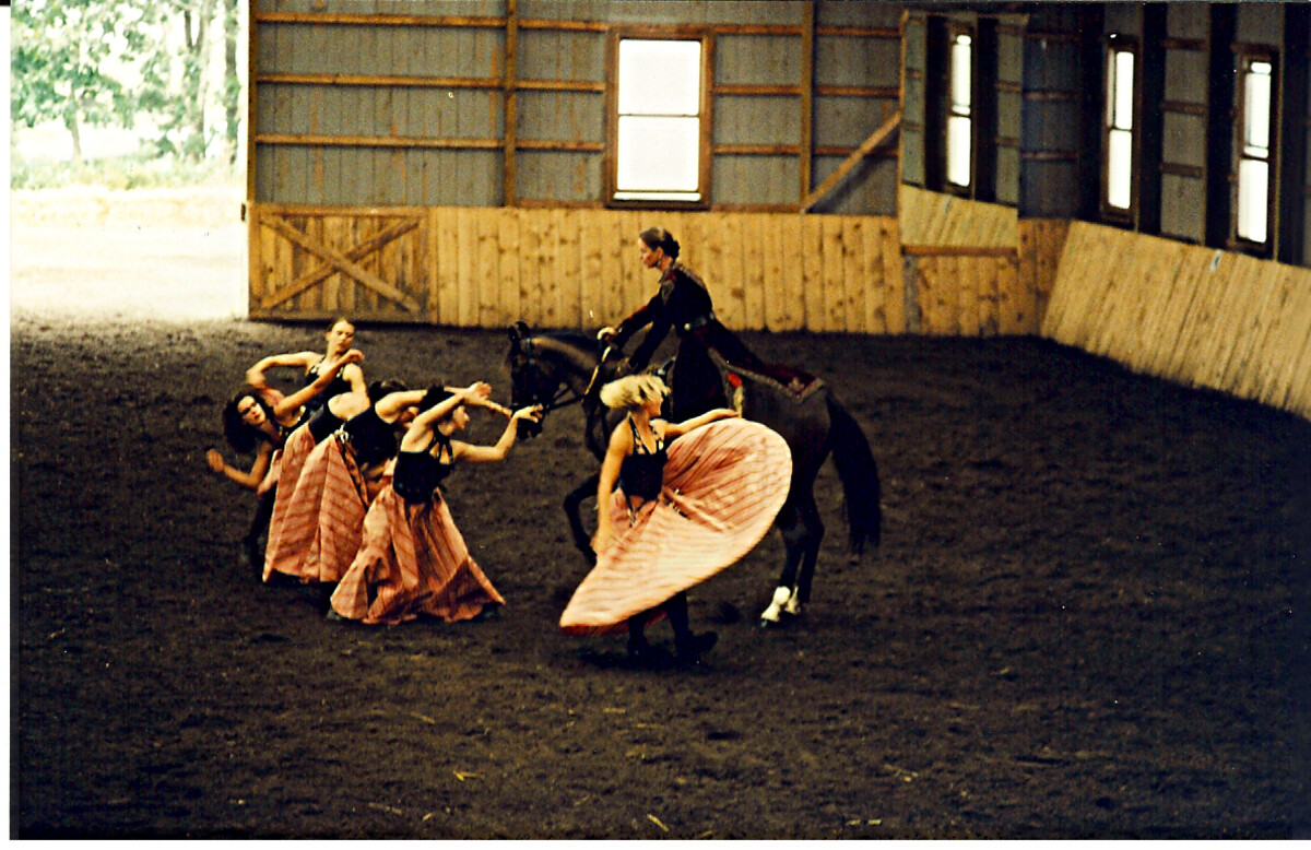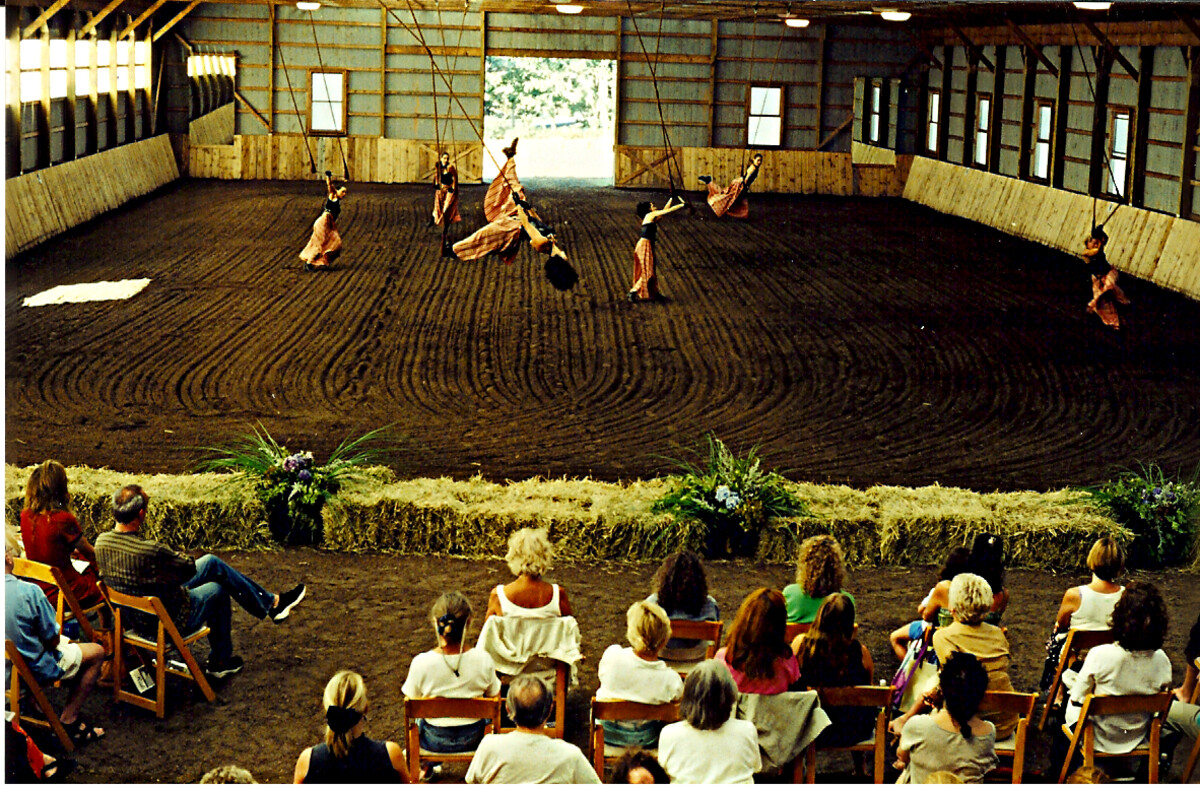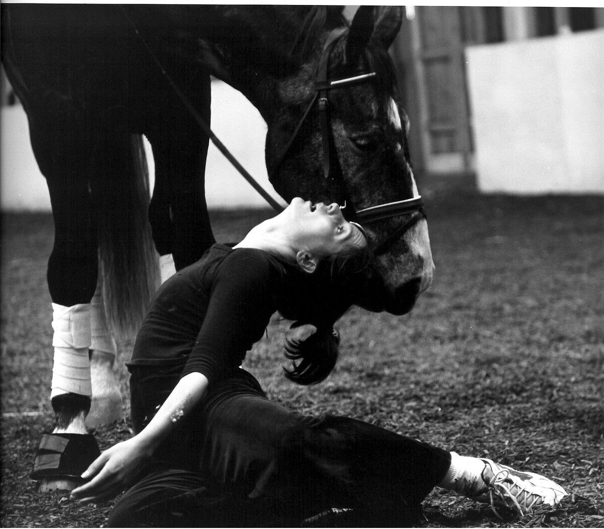 is an evening-length theatrical performance that explores the sensuous and archetypal bond between horse and human through a powerful mix of music, dance and aerial ballet. RIDE grows from my deepest and most abiding passions: dance and horses. It is rooted in the theme of the horse as the beloved, and inspired by this line by poet James Wright: "Yet the earth contains the horse as a remembrancer of wild arenas we avoid." Horses dance. Theirs is the language of movement, consummately perfected, because as prey animals, their lives depend upon its precision and economy. The rhythms are those of their gaits: walk, trot, canter, gallop. The sounds and feelings of those rhythms are known to us. We feel them in our blood.
