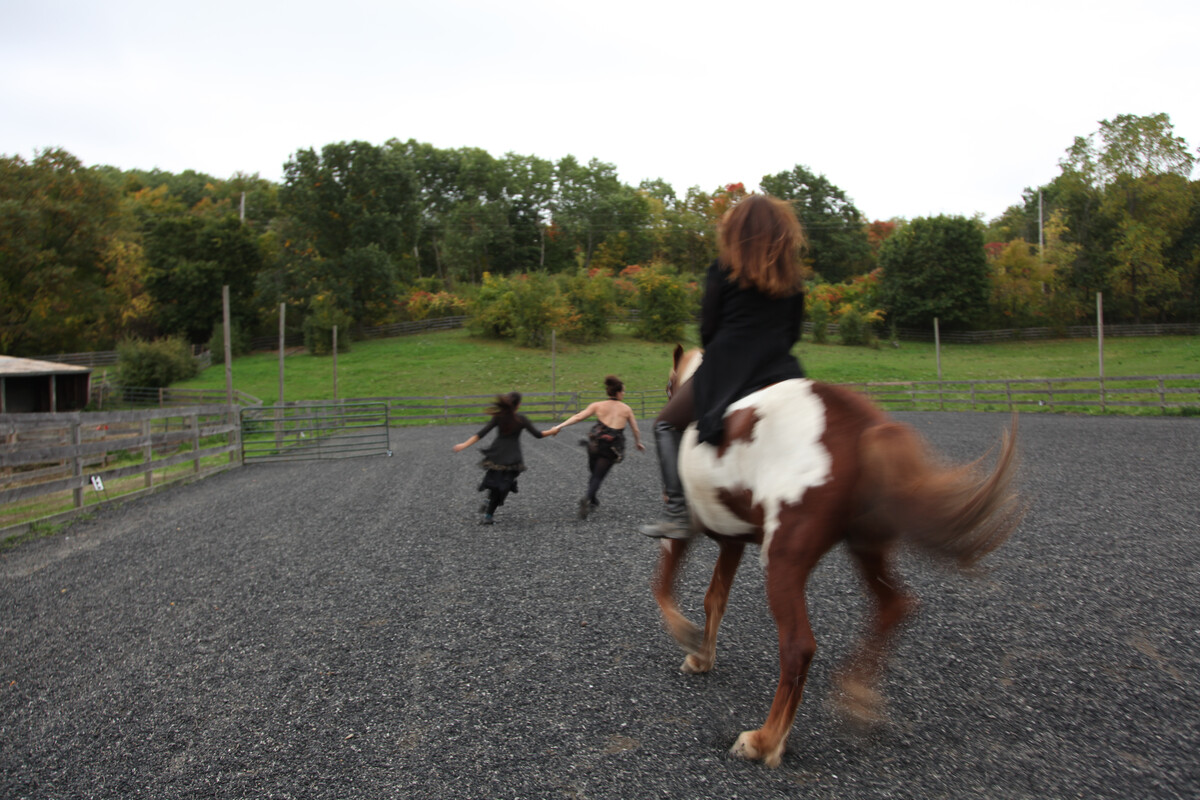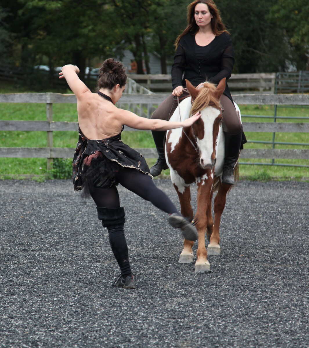 is a community-based, inter-species dance project that brings together riders, vaulters, student dancers, professional dancers from Paula Josa-Jones/Performance Works and singer/performance Artist Ryder Cooley performing with "throw away" horses that have been rescued from abuse or slaughter. It premiered in October 2012 at Little Brook Farm, in Chatham, NY. All the Pretty Horses is the first time rescued horses, who were previously designated as too old, too lame, too dangerous, too wild, could demonstrate their partnership with humans. "It is the time and proper intervention with these formerly cast-off horses that enables them to perform with such beauty, grace and dignity," says Lynn Cross Executive Director of Little Brook Farm. All the Pretty Horses reveals the depth and heart of the human-horse bond and the beauty and possibility of horses that were thrown away or seen as having no value and sold for slaughter. It shows us that when we share time and space with horses, learn to listen to them and communicate through the language of movement, we become more compassionate, more connected to each other and more a part of the shared earth. "What a fabulous and graceful performance. The youth and freshness in the movement and in the troupe (horses included) were a delight. Paula, you continue to amaze and delight your fans." Larry Kunz All the Pretty Horses is an ongoing project, part of our Horses Helping Horses program, that uses performance and educational programming to raise awareness about equine rescue and humane practices. Your donation helps us to make this program available to other sanctuaries as a way of raising awareness and funds for their work. Dancemakers Inc. dba Paula Josa-Jones/Performance Works is a 501(c)3 non-profit organization. Donations are fully tax-deductible to the extent allowed by law. To contribute to All the Pretty Horses, or any of our activities, please use the Google Donate link below or make your check payable to Dancemakers Inc. and send to the address below. We deeply appreciate your tax exempt donation.