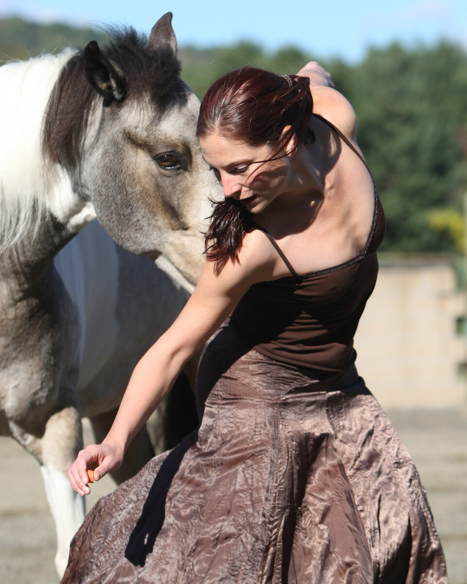 PONY DANCESis performed by dancers DeAnna Pellecchia and Ingrid Schatz, with the liberty horse Escorial ("Pony") and trainer and performer Sarah Hollis, owner of Tintagel Andalusians. PONY DANCES is available for booking for your event, festival or performance season.